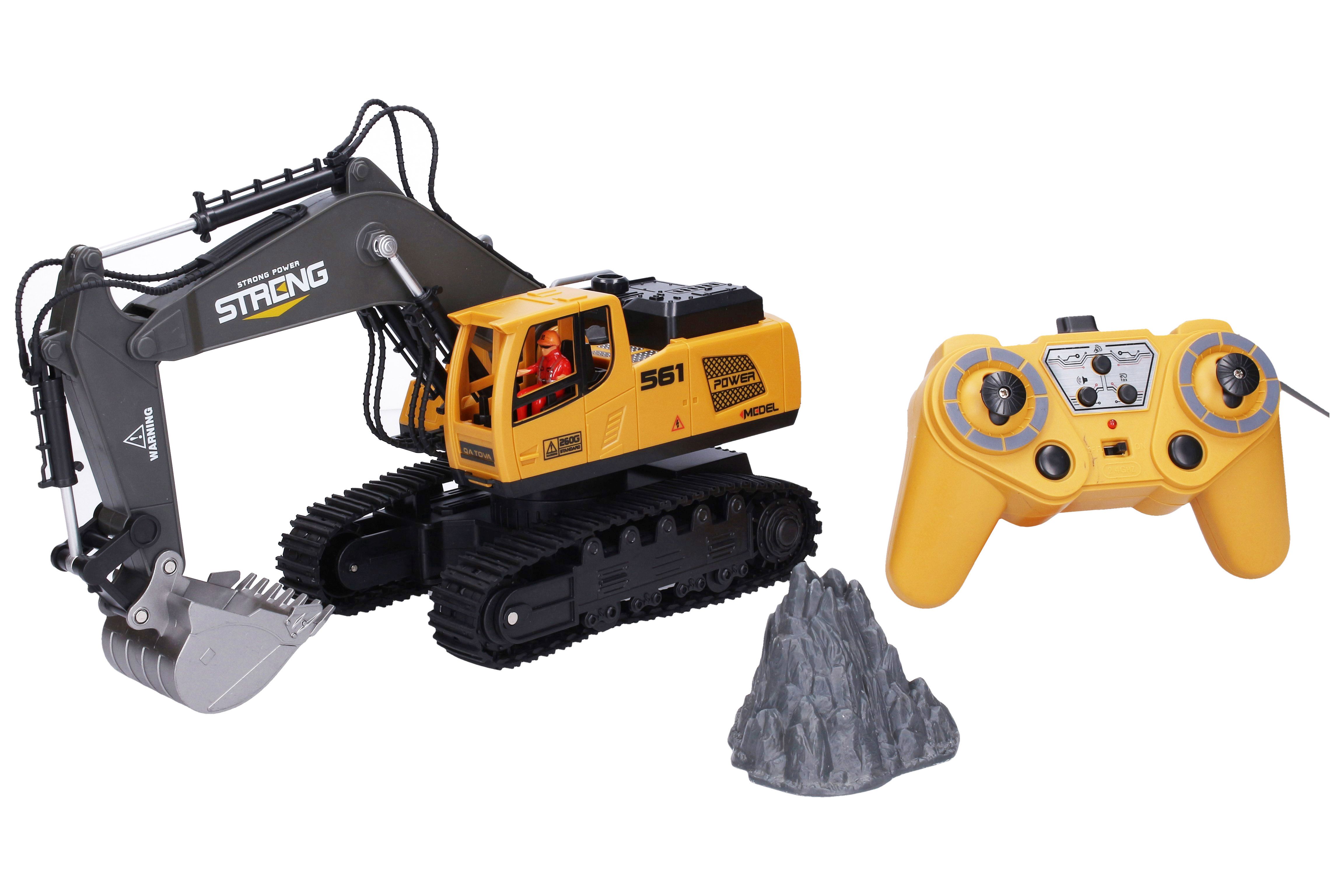 Bagr kouřící RC na dálkové ovládání. Rozměry 35x11,8x24 cm. Frekvence 2.4GHz. Světelné, zvukové a kouřové efekty. Ovladač - levá páčka - pohyb dopředu a dozadu, pravá páčka - otáčení základny doleva a doprava, levé velké tlačítko - zvedání nabíracího ramene, pravé velké tlačítko - pokládání nabíracího ramene, 3 malá tlačítka - klakson, demo režim, kouřové efekty. Nádržka na vodu v horní části bagru. Nádobka na vodu, šroubovák, náhradní kovová hydraulická ramena, hornina součástí. 3.7V bateriový pack do bagru součástí, 2xAA do ovladače nejsou součástí. USB kabel součástí. Přepínač ON/OFF na bagru a na ovladači.