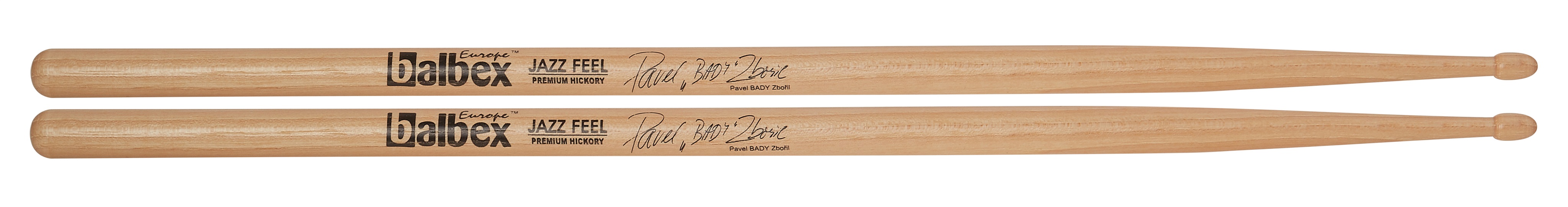 Hickorové paličky Tyto paličky vyrobené podle požadavků Bady Zbořila jsou vysoustruženy ze dřeva hikoru. Toto dřevo je tvrdé, husté a pevné a má schopnost skvěle absorbovat energii z nárazů, díky čemuž nejenže déle vydrží, ale zároveň snižuje zatížení ruky a zápěstí.