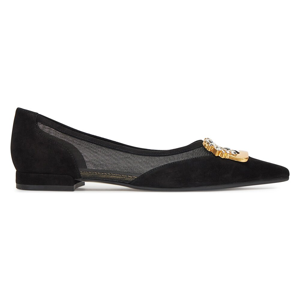 Baleríny ČERNÁ Syntetický materiál,Přírodní kůže (useň) - Semiš EVA MINGE HALIA-SLT2908-51 Czarny EVA MINGE Dámské/Obuv/Baleríny