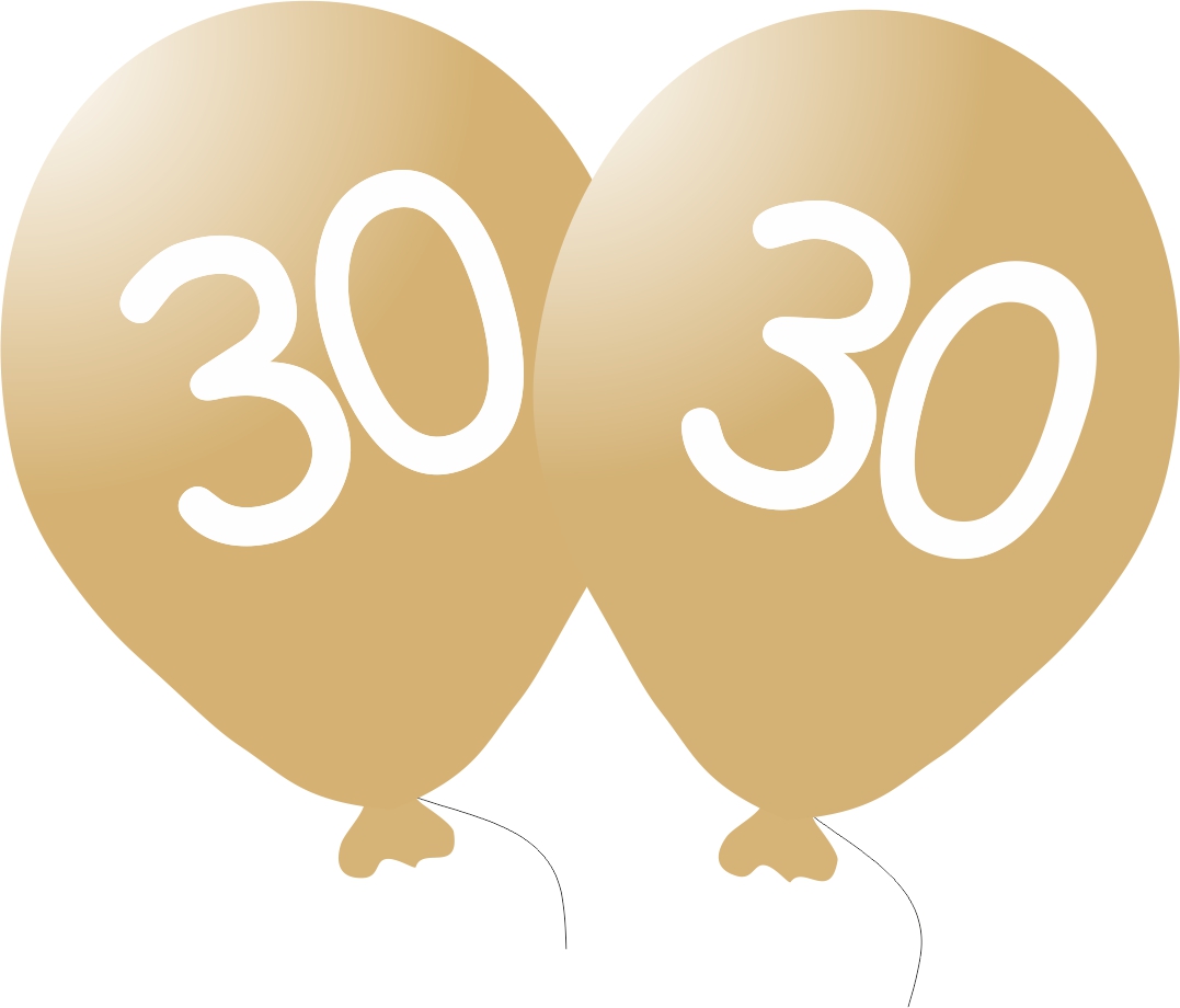 Balónky 30. narozeniny zlaté 5 ks, průměr 30 cm. Balonky zlaté s potiskem 30 - jednoduchá dekorace Vaší narozeninové párty. Pokud není Vámi požadované číslo v nabídce, můžete využít nabídku na mix balonků s univerzálním nápisem Krásné narozeniny anebo "Štastné narozeniny". Kromě obyčejných balonků s českým potiskem máme pro Vás v nabídce i foliové balónky s českým nápisem Krásné narozeniny. Pokud chcete, aby balónky létaly, můžete navštívit sekci Helium anebo Helium set a zde vybrat balení, které Vám bude vyhovovat.. Inspiraci pro Vaší dekoraci najdete na internetovém magazínu www.party-narozeniny.cz Na narozeniny jsou dalším důležitým doplňkem "Dortové svíčky", popř. "Vystřelovací konfety" a "Dortové fontány", velikost B105 / 30cm /, objem 15l. Originální dekorací jsou balónky s jménem oslavence (latexové i foliové) anebo balonky s fotkou oslavence. Více informací získáte na emailu balonky@balonky.cz. 30-té narozeniny jsou první vážnější "kulatiny". A proto si oslavu 30. narozenin chceme se svými přáteli pořádně užít :) A abyste svoje třicáté narozeniny mohli oslavit "jak se patří", připravili jsme pro Vás několik barevných variant. Kompletní nabídku párty dekorace ke 30-tým narozeninám najdete v sekci Párty - 30.narozeniny. Samozřejmě můžete tyto produkty doplnit o další dekorace v jednobarevných variantách a balonky můžete nafouknout heliem. Doba létání latexových balonků nafouknutých heliem je 8-12 hodin – v závislosti na objemu balónků a okolní teplotě. Delší dobu létání mají foliové balónky – několik dní. Dobu létání latexových balónků je možné prodloužit gelem HI FLOAT.