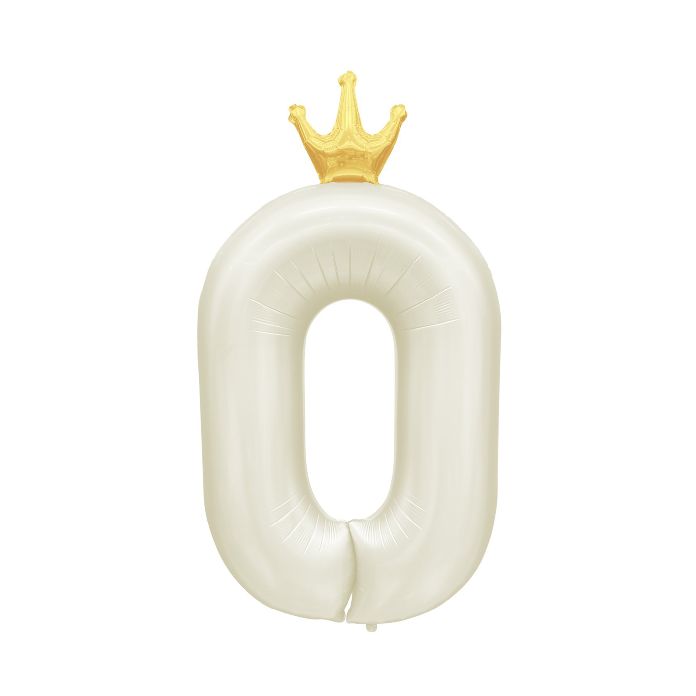 Fóliový balónek ve tvaru číslice 0 se zlatou korunkou je ideální dekorací na oslavu narozenin či jiného významného jubilea. Tento balónek má jemnou světle krémovou barvu, která bude hezky ladit s dalšími párty dekoracemi a doplňky ve stejném odstínu. Velikost/rozměr: 82 cm Materiál: pevná fólie Balení obsahuje: 1 ks balónku s korunkou a papírové brčko pro snadné nafouknutí Balónek je možné nafukovat vzduchem i heliem.