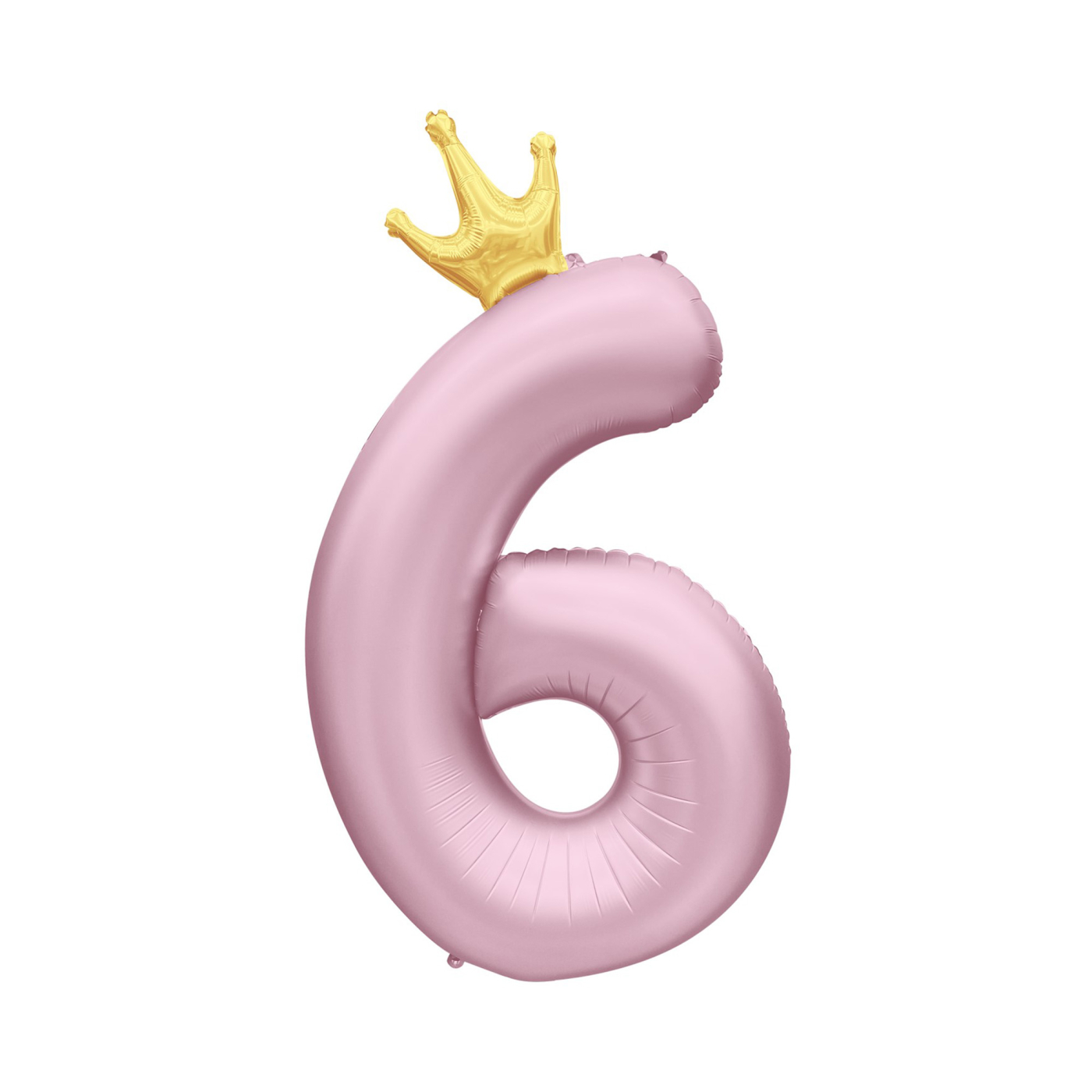 Fóliový balónek ve tvaru číslice 6 se zlatou korunkou je ideální dekorací na oslavu narozenin či jiného významného jubilea. Tento balónek má jemnou světle růžovou barvu, která bude hezky ladit s dalšími párty dekoracemi a doplňky ve stejném odstínu. Velikost/rozměr: 82 cm Materiál: pevná fólie Balení obsahuje: 1 ks balónku s korunkou a papírové brčko pro snadné nafouknutí Balónek je možné nafukovat vzduchem i heliem.