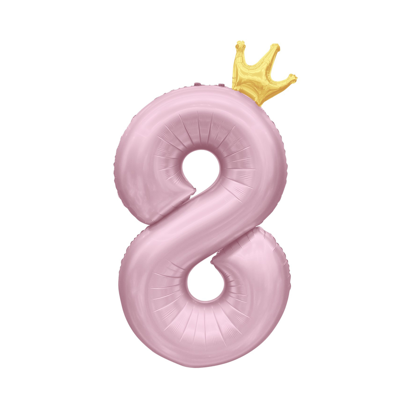 Fóliový balónek ve tvaru číslice 8 se zlatou korunkou je ideální dekorací na oslavu narozenin či jiného významného jubilea. Tento balónek má jemnou světle růžovou barvu, která bude hezky ladit s dalšími párty dekoracemi a doplňky ve stejném odstínu. Velikost/rozměr: 82 cm Materiál: pevná fólie Balení obsahuje: 1 ks balónku s korunkou a papírové brčko pro snadné nafouknutí Balónek je možné nafukovat vzduchem i heliem.