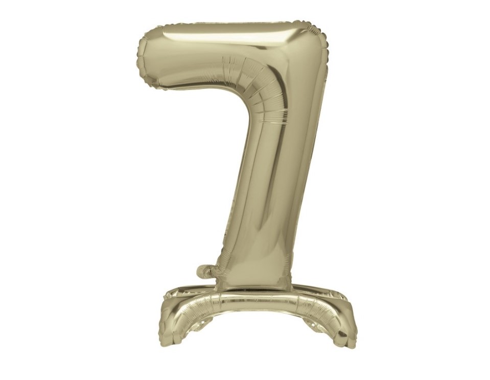 Balónek fóliový číslo 7 zlaté stojící 70 cm Pozor nenafukujte heliem - pouze vzduchem! Balónek s podstavcem se nafukuje pouze vzduchem a díky podstavci ho jednoduše položíte na stůl. Fóliové balónky nabízíme v různých tvarech a barvách. Jsou sice dražší než klasické latexové balónky, ale jejich výhodou je kvalita a nepropustnost. Fóliové balónky nafouknuté vzduchem Vám vydrží několik měsíců bez výrazných změn. Balónek má samouzavíratelný ventil, který ihned po nafouknutí zamezí úniku vzduchu. Při nafukování vzduchem používejte prosím ruční pumpu popř. brčko na pití. Inspiraci pro Vaší dekoraci najdete na internetovém magazínu www.party-narozeniny.cz POZOR!!! Všechny námi nabízené fóliové balónky mají samouzavíratelný ventil. V případě nafukování vzduchem, nafukujte ruční pumpou. Po nafouknutí se balonky samy uzavřou. Je možné je taky průběžně přes uzavíratelný ventil dofukovat.