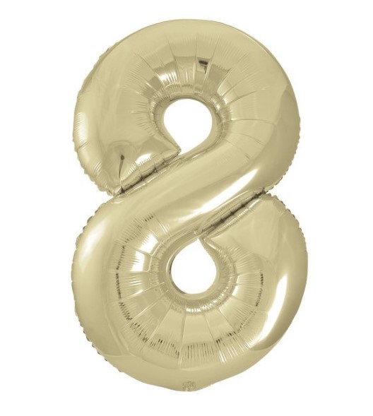 Balónek číslo 8 smetanovo-zlatý Fóliový party balónek číslo 8 v elegantní zlaté-smetanové barvě, který dodá každé oslavě nádech noblesy. Ideální na narozeninovou párty výzdobu, výročí svatby, firemní večírek či novoroční párty. Balónek lze nafouknout heliem i vzduchem a stane se nepřehlédnutelnou součástí vaší party výzdoby. Stačí jen nafouknout a oslava může začít! Rozměr balónku je 86 cm x 53 cm. Objem balónku je 46 litrů. Balónek má samouzavíratelný ventil, který ihned po nafouknutí zamezí úniku vzduchu popř. helia. Při nafukování vzduchem používejte prosím ruční pumpu popř. brčko na pití.