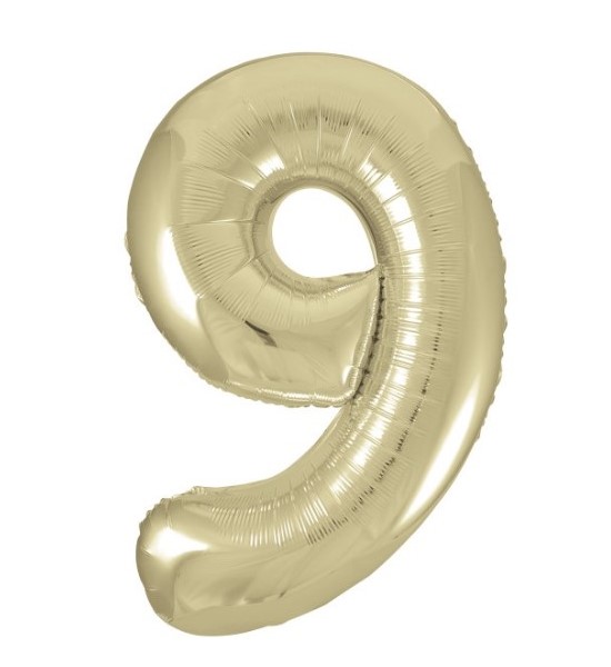 Balónek číslo 9 zlatý smetanový Fóliový party balónek číslo 9 v elegantní zlaté-smetanové barvě, který dodá každé oslavě nádech noblesy. Ideální na narozeninovou párty výzdobu, výročí svatby, firemní večírek či novoroční párty. Balónek lze nafouknout heliem i vzduchem a stane se nepřehlédnutelnou součástí vaší party výzdoby. Stačí jen nafouknout a oslava může začít! Rozměr balónku je 86 cm x 53 cm. Objem balónku je 42 litrů. Balónek má samouzavíratelný ventil, který ihned po nafouknutí zamezí úniku vzduchu popř. helia. Při nafukování vzduchem používejte prosím ruční pumpu popř. brčko na pití.