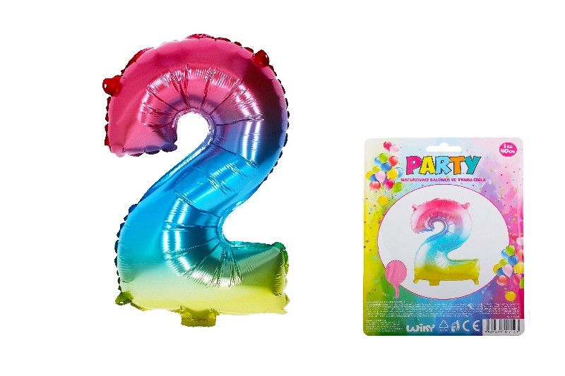 Balónek nafukovací - duhový - 2. Duhový nafukovací balónek ve tvaru čísla 2 je vhodný jako doplněk na narozeninovou párty. Velikost 40 cm