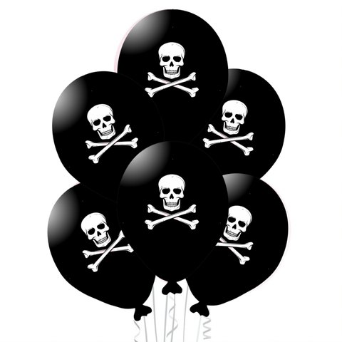 Balonek s potiskem lebky černý 6 ks Černé balonky s potiskem lebky. Balónky jsou vhodné na výzdobu halloween party nebo Pirátská oslava. Pokud chcete, aby balónky létaly, můžete navštívit sekci Helium anebo Helium set a zde vybrat balení, které Vám bude vyhovovat. Balonky lze nafukovat i vzduchem. Průměr balónků je 27 cm a objem 10 litrů. Doba létání latexových balonků nafouknutých heliem je 8-12 hodin – v závislosti na objemu balónků a okolní teplotě. Delší dobu létání mají foliové balónky – několik dní. Dobu létání latexových balónků je možné prodloužit gelem HI FLOAT.