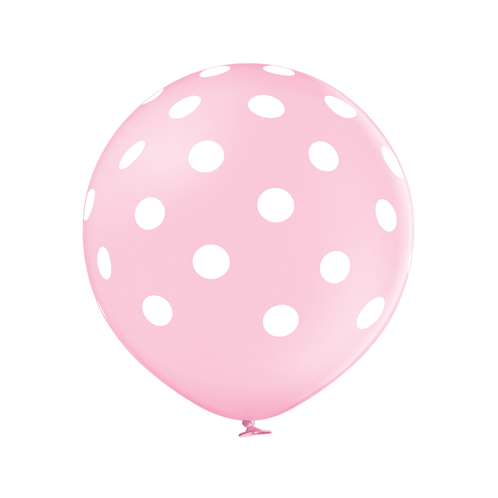 Balónek velký B 250 Pink 004 potiskem kolem balónku bílé tečky Růžový biologicky rozložitelný balónek s průměrem 60 cm. Pokud budete chtít tento maxi balónek nafouknout heliem, je nutné počítat s jeho nadstandardním objemem - 114 litrů. Tento rozměr balónků může být nejenom výrazným doplňkem balónkové dekorace, ale také veselým zábavným prvkem. Maxi balónky jsou k vidění zejména na koncertech a festivalech, kde si s nimi návštěvníci v průběhu vystoupení hrají. Doba létání latexových balonků je přibližně 10-12 hodin - v závislosti na objemu a okolní teplotě. Delší dobu létání mají foliové balónky – několik dní. Dobu létání latexových balónků je možné prodloužit gelem HI FLOAT. Z balónků můžete vyrobit balónkové dekorace - např. okouzlující balónkovou girlandu. Více informací ohledně nafukování balonků najdete v sekci "Pumpy a příslušenství".