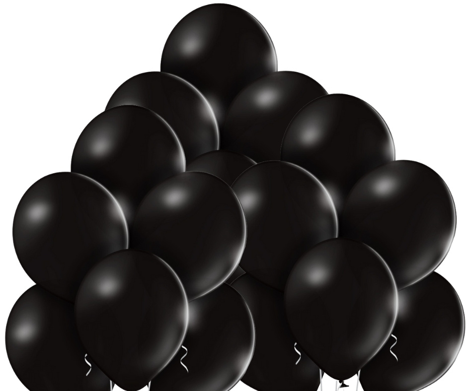 Nafukovací balónky černé 50 kusů Černé balónky o průměru 27 cm - objem balonku je 10 litrů. Balónky jsou skladem, ihned k dodání. Na balónky si můžete nechat natisknout Vaše logo, popř. nápis dle svých představ. Tiskneme i malé série již od 20 ks. Více informací o možnostech potisku najdete v sekci "Reklamní balónky s potiskem" Balónky jsou vhodné na nafukování vzduchem i heliem. Chcete aby balónky létaly? Můžete k nim zakoupit samostatně hélium anebo zakoupit rovnou set helia a balónků barvy dle Vašeho přání. Vhodné na přípravu balónkové dekorace. V e-shopu najdete i pásku na přípravu balónkové girlandy anebo hotové sety balónkových girland. Doba létání latexových balonků nafouknutých heliem je 8-12 hodin – v závislosti na objemu balónků a okolní teplotě. Delší dobu létání mají foliové balónky – několik dní. Dobu létání latexových balónků je možné prodloužit gelem HI FLOAT.