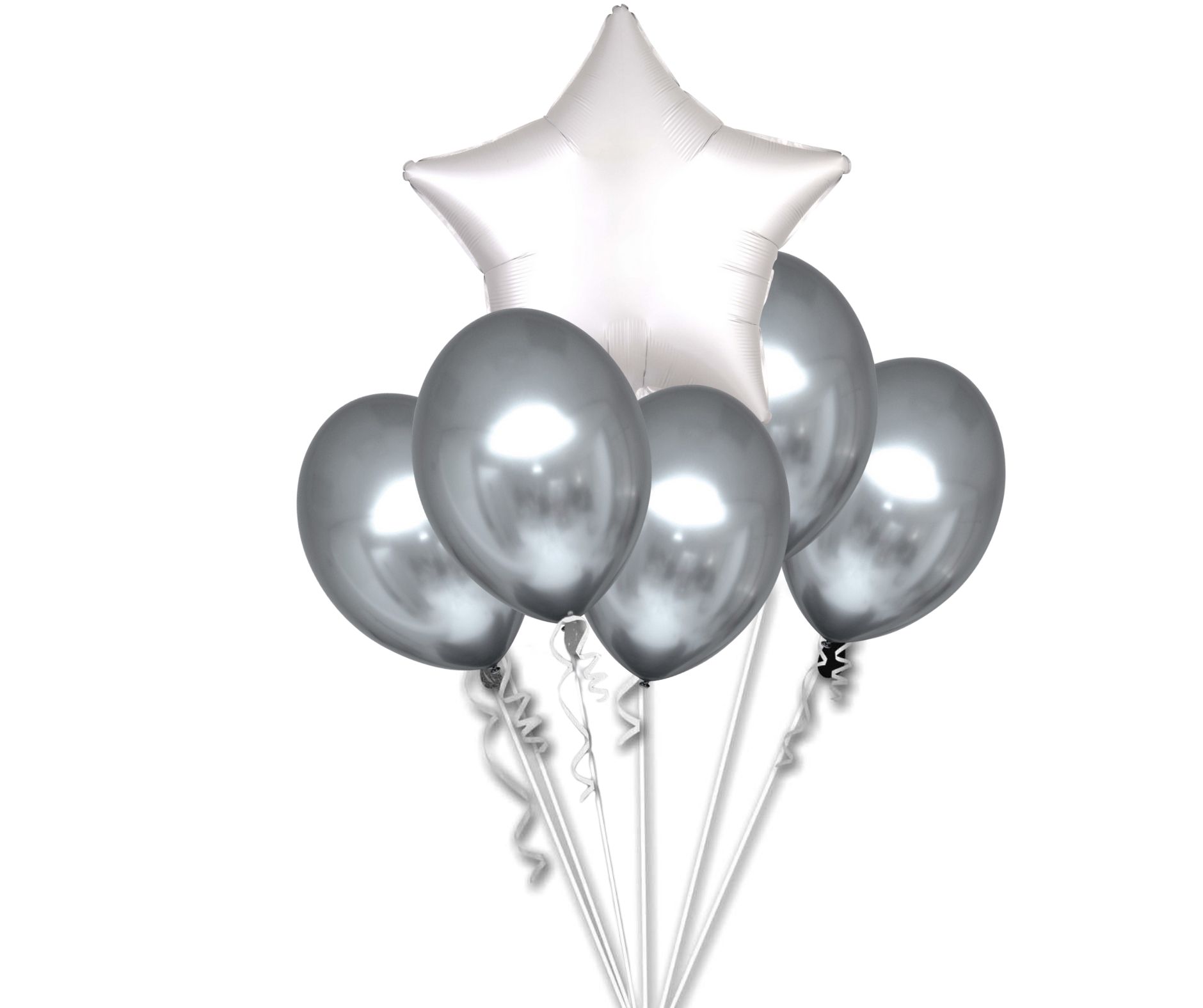 Balónky chromové stříbrné a bílá hvězda set V balení je 6 x ks chromových stříbrných balónků průměr 30 cm a fóliový balónek bílá hvězda 42 cm. Objem chromového balónku je 15 L a fóliového balónku je 13 L. Doveďte svou slavnostní výzdobu k dokonalosti s chromovými balónky ve stříbrném odstínu. Průměr balónku v nafouknutém stavu je 30 cm, výška 38 cm a obvod 85-90 cm. Objem balónku je 15 L. Chromové balónky ve stříbrném odstínu jsou elegantní dekorací pro jakoukoliv příležitost. Můžete je nafukovat heliem anebo vzduchem. Doba létání latexových balonků nafouknutých heliem je 8-12 hodin – v závislosti na objemu balónků a okolní teplotě. Delší dobu létání mají foliové balónky – několik dní. Dobu létání latexových balónků je možné prodloužit gelem HI FLOAT.