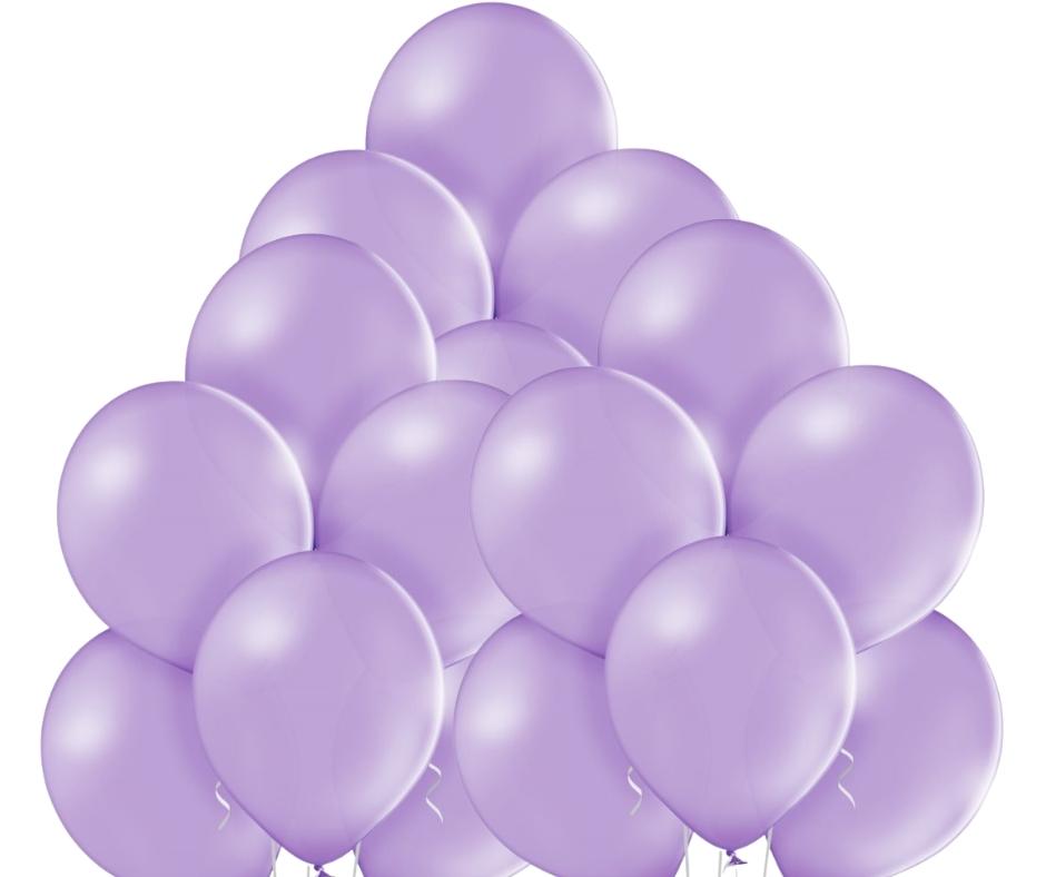 Nafukovací balónky světlefialové 50 kusů Levandulové balónky o průměru 27 cm - objem balonku je 10 litrů. Balónky jsou skladem, ihned k dodání. Na balónky si můžete nechat natisknout Vaše logo, popř. nápis dle svých představ. Tiskneme i malé série již od 20 ks. Více informací o možnostech potisku najdete v sekci "Reklamní balónky s potiskem" Balónky jsou vhodné na nafukování vzduchem i heliem. Chcete aby balónky létaly? Můžete k nim zakoupit samostatně hélium anebo zakoupit rovnou set helia a balónků barvy dle Vašeho přání. Vhodné na přípravu balónkové dekorace. V e-shopu najdete i pásku na přípravu balónkové girlandy anebo hotové sety balónkových girland. Doba létání latexových balonků nafouknutých heliem je 8-12 hodin – v závislosti na objemu balónků a okolní teplotě. Delší dobu létání mají foliové balónky – několik dní. Dobu létání latexových balónků je možné prodloužit gelem HI FLOAT.