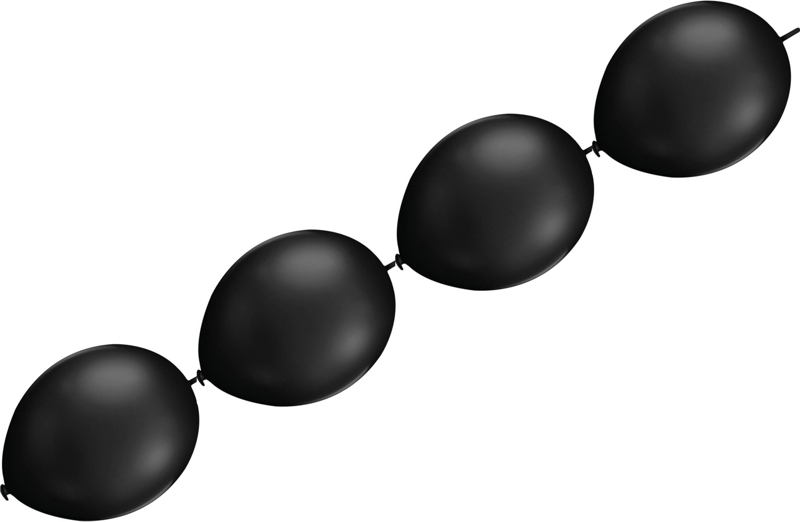 Balónek řetězový 1ks - černá Spojovací řetězové balónky umí vytvářit zábavnou a dechberoucí výzdobu, která přitahuje pozornost a přidává oslavě nebo události vzrušující atmosféru. Balónky jsou ve vrchní části opatřeny kouskem latexu navíc, který připevníme na koncovou část předešlého balónku. Tímto postupným navazováním balónků vytvoříme řetěz z balónků v libovolné délce a v libovolné barevné kombinaci. Balónky můžete nafukovat vzduchem anebo heliem. Při nafukování vzduchem je nutné připevnit hotový řetěz z balónků v interiéru, nejlépe pomocí samolepících závěsů. V případě nafukování heliem vytvoříte z řetězových balónků oblouk, který je nutné připevnit k podlaze, nejlépe pomocí těžítek na létající balónky. Při nafukování heliem berte do úvahy, že balónky létají cca 10-12 hodin. Proto je nutné dekoraci připravit těsně před akcí, aby oblouk létal dostatečně dlouho.
