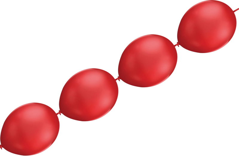Balónky řetězové červené 5 ks Spojovací řetězové balónky umí vytvářit zábavnou a dechberoucí výzdobu, která přitahuje pozornost a přidává oslavě nebo události vzrušující atmosféru. Balónky jsou ve vrchní části opatřeny kouskem latexu navíc, který připevníme na koncovou část předešlého balónku. Tímto postupným navazováním balónků vytvoříme řetěz z balónků v libovolné délce a v libovolné barevné kombinaci. Balónky můžete nafukovat vzduchem anebo heliem. Při nafukování vzduchem je nutné připevnit hotový řetěz z balónků v interiéru, nejlépe pomocí samolepících závěsů. V případě nafukování heliem vytvoříte z řetězových balónků oblouk, který je nutné připevnit k podlaze, nejlépe pomocí těžítek na létající balónky. Při nafukování heliem berte do úvahy, že balónky létají cca 10-12 hodin. Proto je nutné dekoraci připravit těsně před akcí, aby oblouk létal dostatečně dlouho.