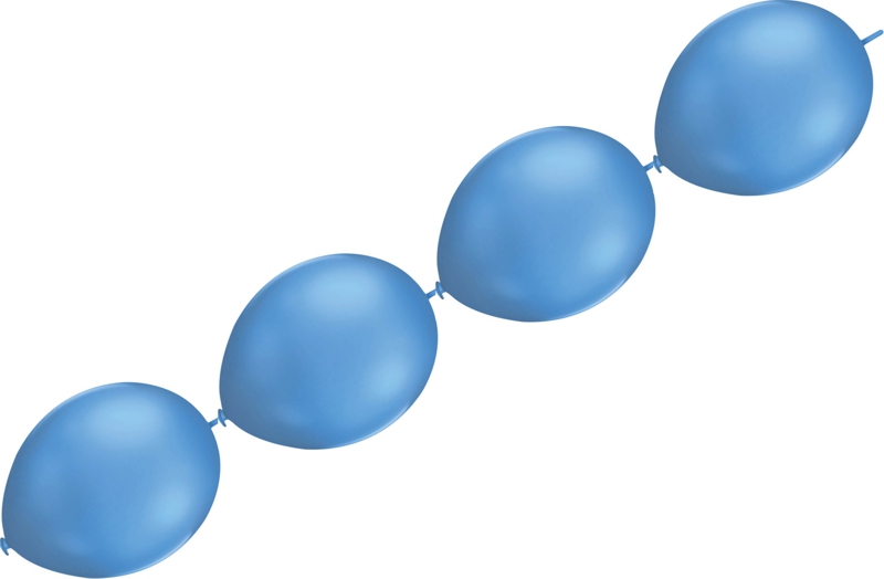 Balónky řetězové tmavě modré 5 ks Spojovací řetězové balónky umí vytvářit zábavnou a dechberoucí výzdobu, která přitahuje pozornost a přidává oslavě nebo události vzrušující atmosféru. Balónky jsou ve vrchní části opatřeny kouskem latexu navíc, který připevníme na koncovou část předešlého balónku. Tímto postupným navazováním balónků vytvoříme řetěz z balónků v libovolné délce a v libovolné barevné kombinaci. Balónky můžete nafukovat vzduchem anebo heliem. Při nafukování vzduchem je nutné připevnit hotový řetěz z balónků v interiéru, nejlépe pomocí samolepících závěsů. V případě nafukování heliem vytvoříte z řetězových balónků oblouk, který je nutné připevnit k podlaze, nejlépe pomocí těžítek na létající balónky. Při nafukování heliem berte do úvahy, že balónky létají cca 10-12 hodin. Proto je nutné dekoraci připravit těsně před akcí, aby oblouk létal dostatečně dlouho.