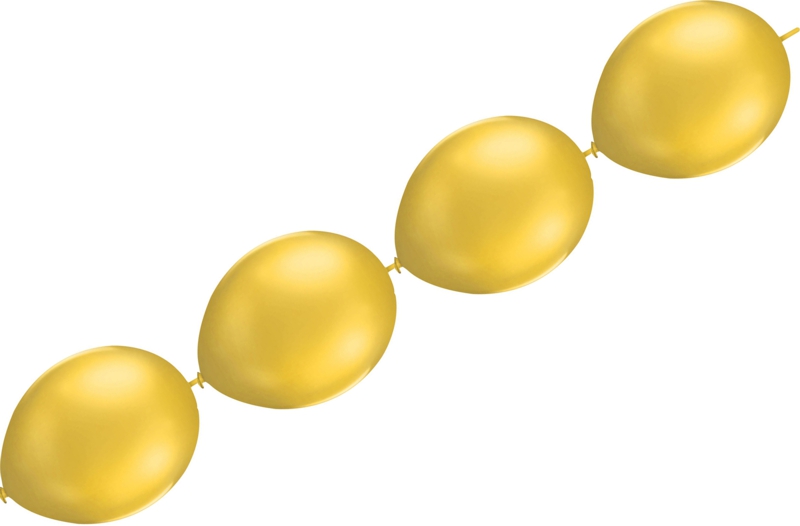 Balónky řetězové metallic 5ks - zlatá Spojovací řetězové balónky umí vytvářit zábavnou a dechberoucí výzdobu, která přitahuje pozornost a přidává oslavě nebo události vzrušující atmosféru. Balónky jsou ve vrchní části opatřeny kouskem latexu navíc, který připevníme na koncovou část předešlého balónku. Tímto postupným navazováním balónků vytvoříme řetěz z balónků v libovolné délce a v libovolné barevné kombinaci. Balónky můžete nafukovat vzduchem anebo heliem. Při nafukování vzduchem je nutné připevnit hotový řetěz z balónků v interiéru, nejlépe pomocí samolepících závěsů. V případě nafukování heliem vytvoříte z řetězových balónků oblouk, který je nutné připevnit k podlaze, nejlépe pomocí těžítek na létající balónky. Při nafukování heliem berte do úvahy, že balónky létají cca 10-12 hodin. Proto je nutné dekoraci připravit těsně před akcí, aby oblouk létal dostatečně dlouho.