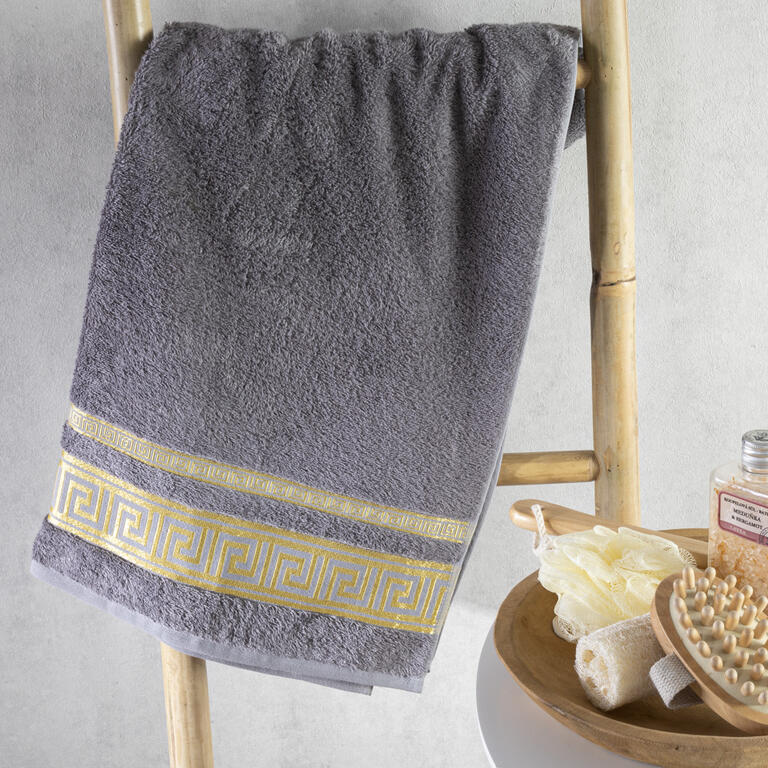 Bambusová osuška ROMA v tmavě šedé barvě s tradiční řeckou bordurou. Mnoho z vás se již přesvědčilo o vysoké funkčnosti bambusových vláken, které vynikají svojí savostí a antibakteriálními účinky. Vysoká gramáž tkaniny 550 g/m2 je zárukou kvality a měkkosti. Po vyprání zůstávají osušky z bambusové příze krásně jemné a hebké.