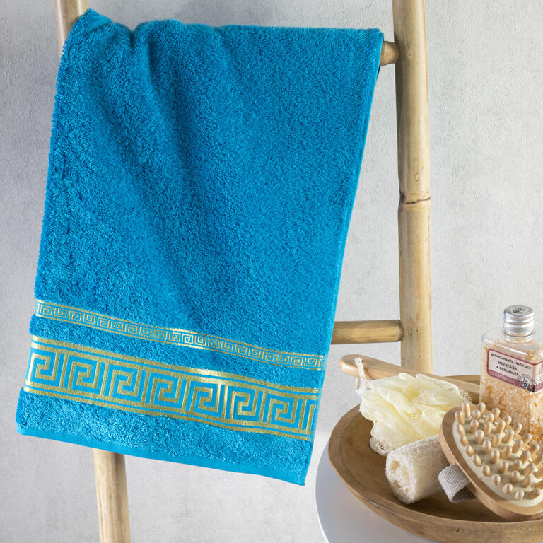 Bambusová osuška ROMA v atraktivní tyrkysové barvě s tradiční řeckou bordurou. Mnoho z vás se již přesvědčilo o vysoké funkčnosti bambusových vláken, které vynikají svojí savostí a antibakteriálními účinky. Vysoká gramáž tkaniny 550 g/m2 je zárukou kvality a měkkosti. Po vyprání zůstávají osušky z bambusové příze krásně jemné a hebké.