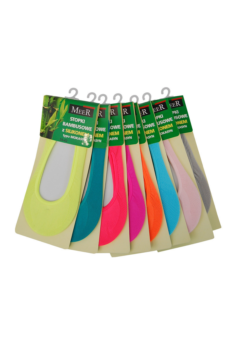 Dámské ponožky baleríny, které jsou vyrobené z měkkého a příjemného bambusového vlákna s přídavkem elastických přízí. Model má na vnitřní straně paty silikon, díky kterému se ponožky při nošení nesesouvají. Ponožky se ideálně přizpůsobují chodidlu a chrání před odřeninami. Složení: 76 % bambusová příze, 21 % polyamid, 3 % elastan.