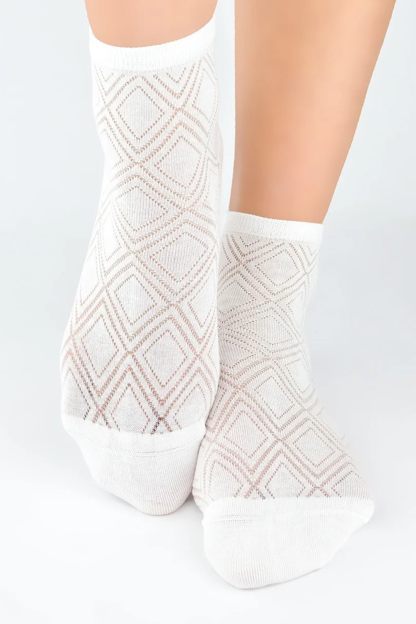 Styl i wygoda w jednym! Skarpety bambusowe w romby SB127 to idealny wybór dla kobiet ceniących komfort i elegancki design. Wykonane z miękkiej i przewiewnej wiskozy z dodatkiem bawełny, zapewniają doskonałą oddychalność oraz uczucie świeżości przez cały dzień. Płaskie szwy i nieucisk