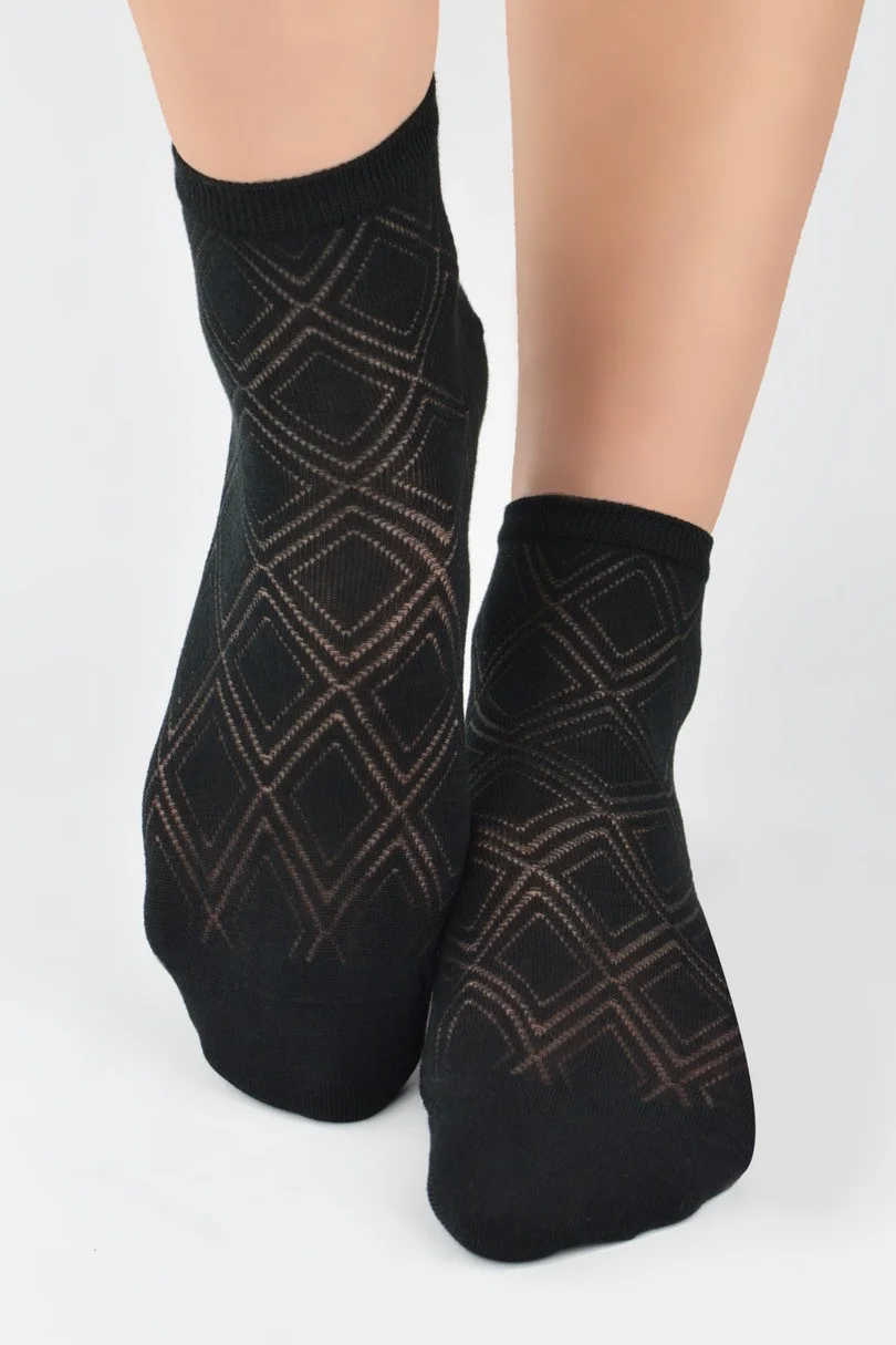 Styl i wygoda w jednym! Skarpety bambusowe w romby SB127 to idealny wybór dla kobiet ceniących komfort i elegancki design. Wykonane z miękkiej i przewiewnej wiskozy z dodatkiem bawełny, zapewniają doskonałą oddychalność oraz uczucie świeżości przez cały dzień. Płaskie szwy i nieucisk