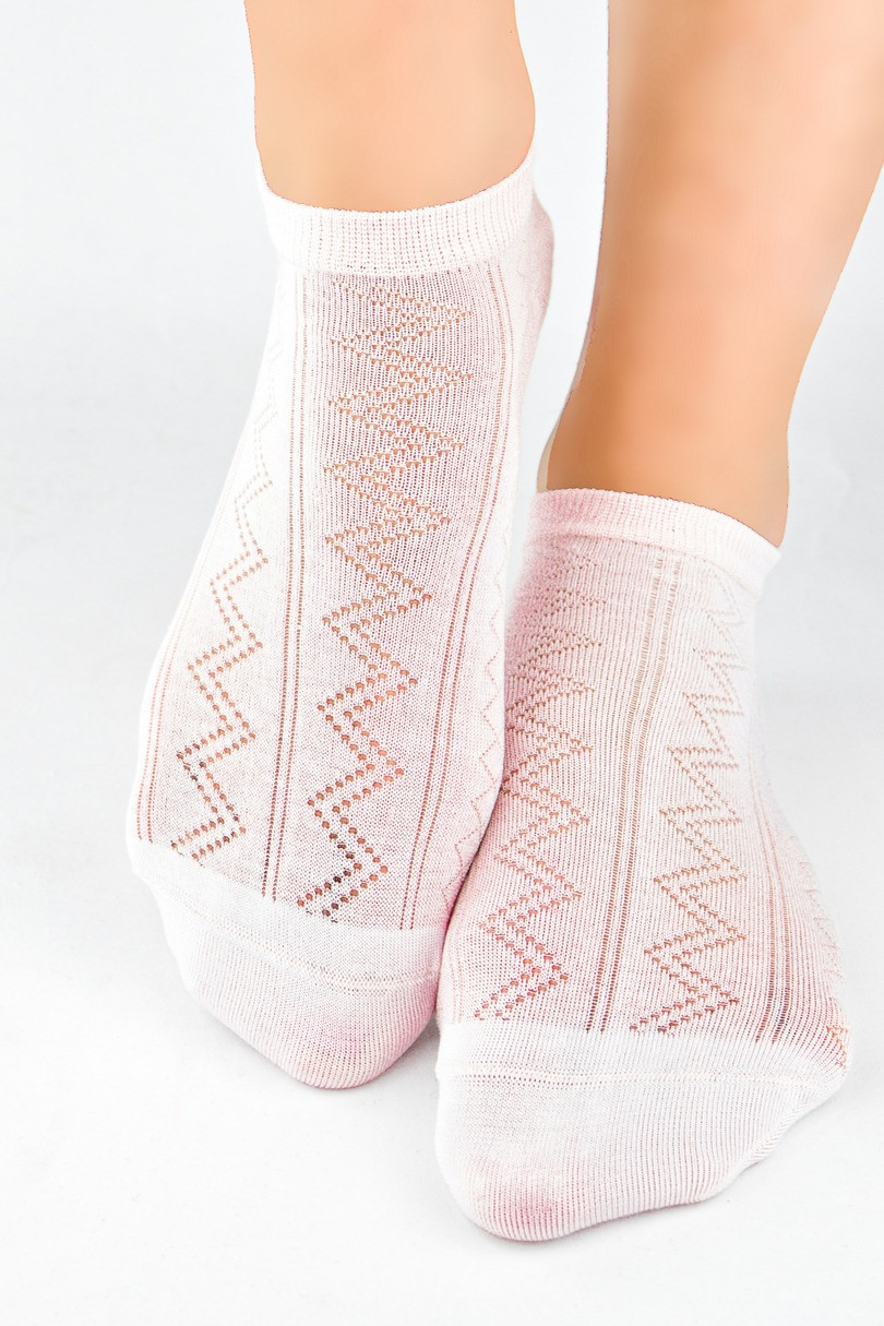 Stopki damskie bambusowe ST048 to połączenie komfortu, lekkości i elegancji. Wykonane z cienkiej wiskozy bambusowej z dodatkami, zapewniają wyjątkową miękkość i przewiewność. Ich delikatna ażurowa faktura oraz płaskie szwy sprawiają, że stopki są niemal niewyczuwalne na stopie, a bezuciskowy ściągacz gwarantuje doskonałe dopasowanie bez dyskomfortu. Dzięki oddychającej dzianinie skóra pozostaje sucha i świeża przez cały dzień. To idealny wybór na cieplejsze dni oraz dla osób ceniących sobie wygodę i wysoką jakość.