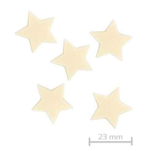 Čokoládová dekorace vhodná na zdobení vánočních cukrářských výrobků jako např. zákusky, cukroví, cupcakes, dorty, poháry, dezerty. Velikost 1 ks je 23 cm. Balení obsahuje 30 ks. Složení: cukr, kakaové máslo, sušené plnotučné mléko, emulgátor E322 (slunečnicový lecitin), přírodní vanilkové aroma. Může obsahovt SOJU. Skladujte při teplotě: 15-25°C, relativní vlhkost do 70%. Výživové hodnoty (ve 100 g výrobku): Ener. hodnota 2438KJ / 588 kcal; Tuky: 39 g z toho nasycené mastné kyseliny 24,1 g;Sacharidy: 54,6 g z toho cukry 54,6 g; Bílkoviny: 3,8 g; Sůl: 0,1 g.