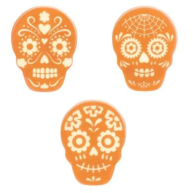 🎃 Čokoládové dekorace na Halloween – strašidelně sladké zdobení Hledáte originální a tematickou dekoraci pro své sladké výtvory na Halloween? Čokoládové dekorace na Halloween jsou tou správnou volbou! Lahodná čokoláda v podobě lebek dodá dortům, cupcakům, perníkům i dalším dezertům jedinečný a hravý vzhled. Perfektní na halloweenské party, dětské oslavy i tematické sweet bary. 👻 K čemu se čokoládové dekorace na Halloween hodí? Zdobení dortů a cupcake – stačí položit na krém nebo polevu a ihned získáte strašidelný efekt. Dekorace halloweenských sušenek a perníčků – snadno přilepíte čokoládovou či cukrovou polevou. Ozdoba zmrzlinových pohárů a dezertů – čokoláda krásně ladí s ovocnými i krémovými příchutěmi. Sladké dárky a cukrářské balíčky – ideální doplněk k domácím sladkostem pro Halloween. 🕷️ Proč si vybrat právě čokoládové dekorace na Halloween? Vyrobeno z kvalitní čokolády – skvělá chuť i vzhled v jednom. Tematické motivy – duchové, dýně, pavouci či netopýři pro autentickou halloweenskou atmosféru. Snadná aplikace – dekorace jednoduše umístíte na dezert bez složité přípravy. Univerzální využití – hodí se na dorty, cupcaky, sušenky i zmrzlinu. 🎃 Ozdobte své sladkosti originálními čokoládovými dekoracemi na Halloween a proměňte každý dezert v tematické mistrovské dílo. Objednejte si ještě dnes a připravte se na strašidelně sladkou oslavu! Velikost 26 x 35 mm. Balení obsahuje 12 ks. Složení: cukr, kakaové máslo, sušené plnotučné mléko, emulgátor E322 (slunečnicový lecitin), přírodní vanilkové aroma, přírodní tuky (planvý, bambusový), barvivo: E101,E120. Může obsahovat stopy sóji. Výživové hodnoty (ve 100g výrobku): Energetická hodnota 2438 KJ / 588 kcal; Tuky: 39 g z toho nasycené mastné kyseliny 24,1 g; Sacharidy: 54,6 g z toho cukry 54,6 g; Bílkoviny: 3,8 g; Sůl: 0,1 g.