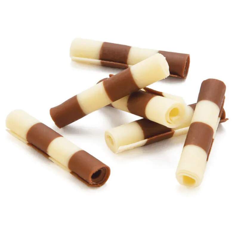 Čokoládová dekorace vhodná pro dekoraci dortů, dezertů. Délka cca 40 mm. Nedoporučujeme objednávat v teplých letních dnech z důvodu poškození během přepravy. Složení: cukr, kakaové máslo, kakaová hmota, plnotučné sušené mléko, sušená syrovátka, laktóza, emulgátor E322 (slunečnicový lecitin), přírodní vanilkové aroma. Může obsahovat stopy sóji. Skladujte při teplotě: 15-22°C, relativní vlhkost do 70%. Výživ. hodnoty (ve 100 g výrobku): Energ. hodnota 2221 KJ / 533 kcal; Tuky: 29,2 g z toho nasyc. mas. kyseliny 17,6 g; Sacharidy: 60,7 g z toho cukry 59,9 g; Bílkoviny: 5,1 g; Sůl: 0,15 g.