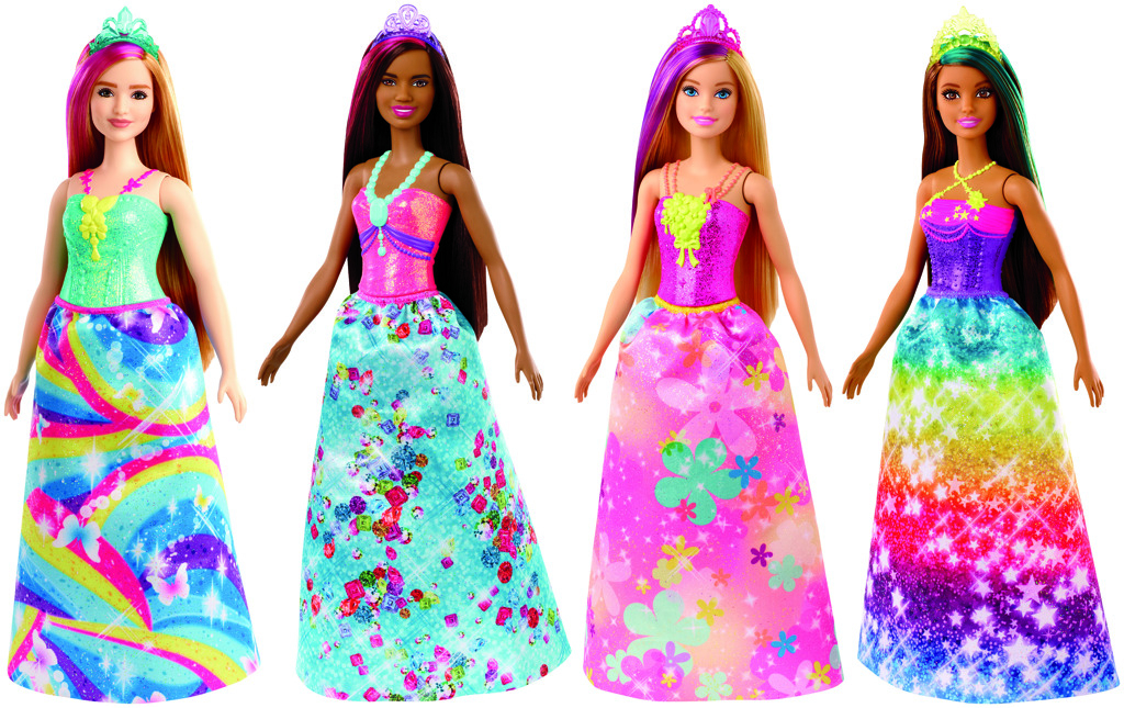 Zažij pohádková dobrodružství s těmito překrásnými princeznami z kouzelného království Barbie™ Dreamtopia. Každá z princezen je oblečena do třpytivého pestrobarevného živůtku, odnímatelné sukýnky s třpytivými detaily a dech beroucími potisky. Vlasy princezen zdobí pestrobarevný melír a nechybí samozřejmě ani odnímatelná korunka, která skvěle podtrhuje jejich královský vzhled.
