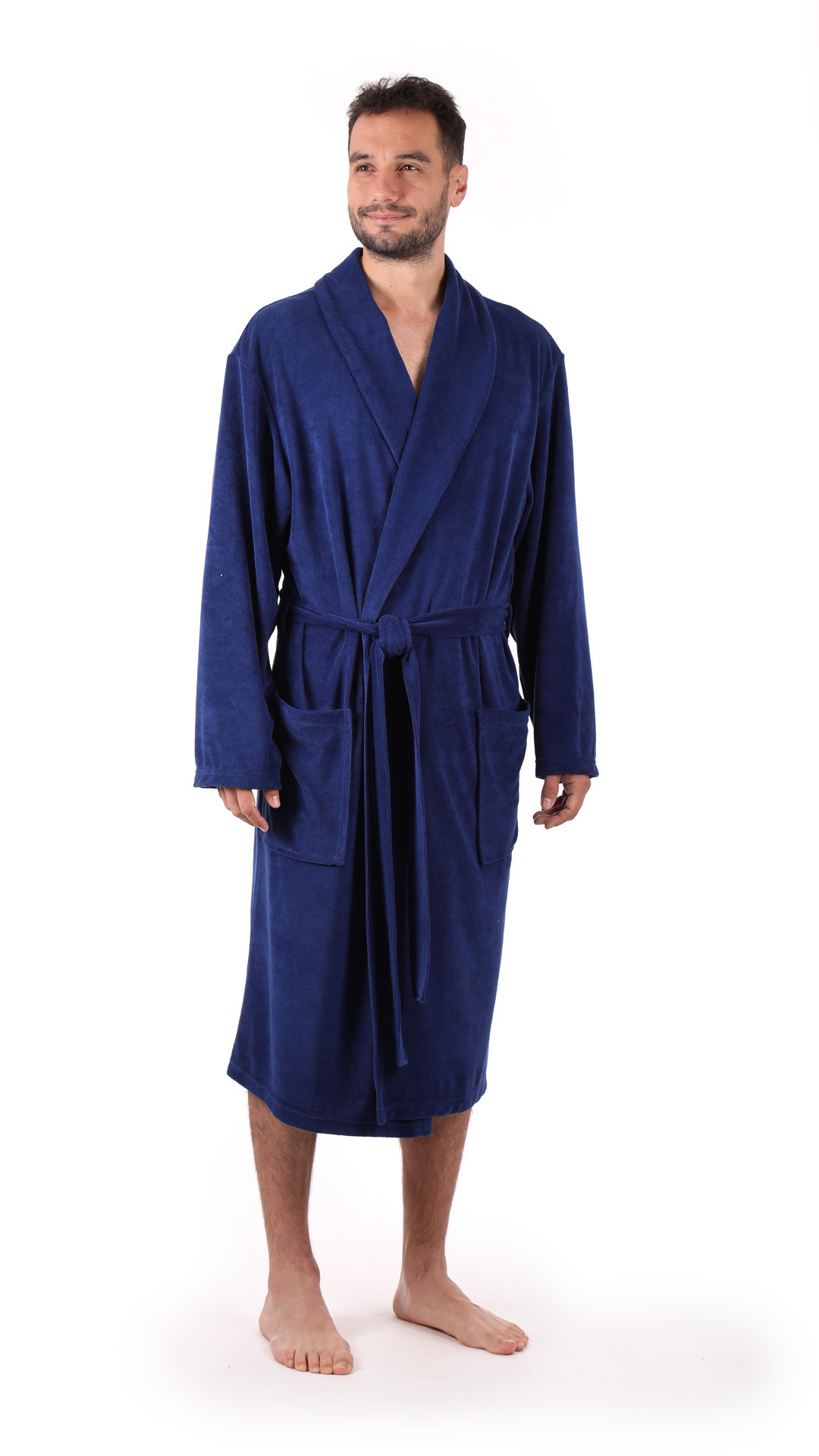 Lehký pánský bavlněný froté župan pro nerušené chvíle odpočinku. Materiál: lehký froté úplet ve složení 80 % bavlna, 20 % polyester Střih: klasický střih se šálovým límcem v délce 115cm Použití: jako lehký župan nejen na cestování vhodný o pro osušení Vyrábíme ve velikostech 3-6XL Česká výroba s tradicí již od roku 1995. Potřebujete jinou než standardní velikost? Napište nám, ušijeme na míru podle potřeby vaší postavy. Pánský župan Bari vyniká svou lehkostí a nadčasovým střihem. Je ušitý z jemného, tenkého bavlněného froté, které je příjemné k pokožce a spolehlivě saje vlhkost. Díky tomu se hodí nejen po koupeli, ale i pro letní dny, kdy oceníte jeho vzdušnost. Župan má klasický šálový límec, dvě prostorné kapsy a pásek v pase. Elegantní design spojuje praktičnost a pohodlí, takže se stane vaším spolehlivým společníkem doma, u bazénu nebo na dovolené.Jeho lehký, měkký a zároveň savý materiál s vysokým podílem bavlny je ideální pro postavy s větší velikostí. Nebude vám v něm zbytečné teplo, nepřidává objem díky slabému splývavému materiálu, je pružný a přizpůsobí se vašim potřebám.Bari pánské: tmavě modráStřih: šálový límecMateriál: 80% bavlna 20% polyester froté úpletÚčel použití: volný čas/lehkéVhodné pro výšivku: vhodné pro všechny typy výšivek