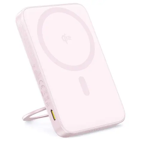 Baseus PicoGo Qi2 s otočným stojanem 5000mAh 20W růžová / Powerbanka / USB-C / Qi2 / Magsafe