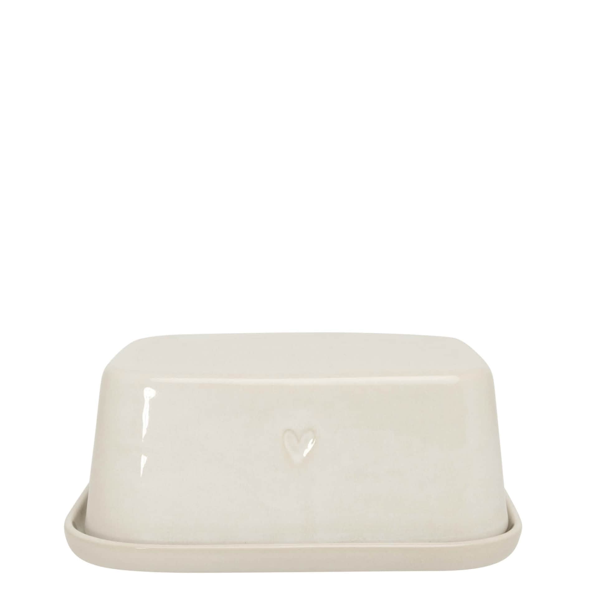 Máslenku zdobí jednoduchý motiv malého srdíčka, které je pro tuto značku typické. Glazura v barvě clay je tlumená, hřejivá, s nádechem béžové a terakoty. Působí klidně, harmonicky a nadčasově. délka 14 cm / šířka 11 cm / výška 6 cm Vyrobeno z keramiky.