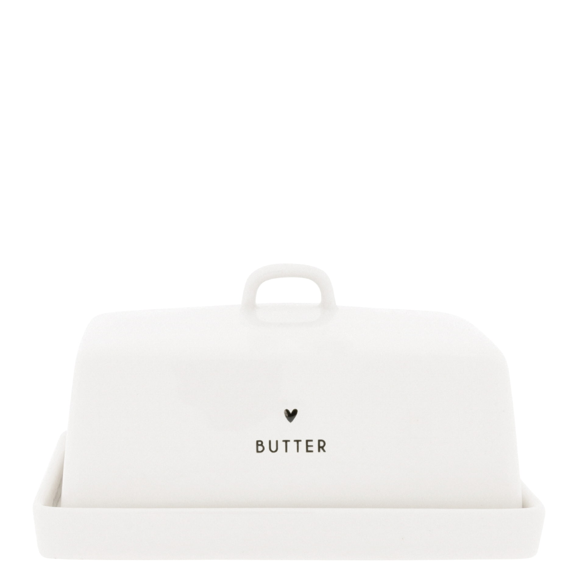 Zpříjemněte si rána čerstvým pečivem s máslem a kochejte se touto máslenkou, která se jen tak neokouká. Je minimalistická, zdobí ji malé černé srdíčko a nápis BUTTER. Krásně zapadne do jakéhokoliv interiéru. délka 15 cm / šířka 12 cm / výška 8 cm Vyrobeno z keramiky.