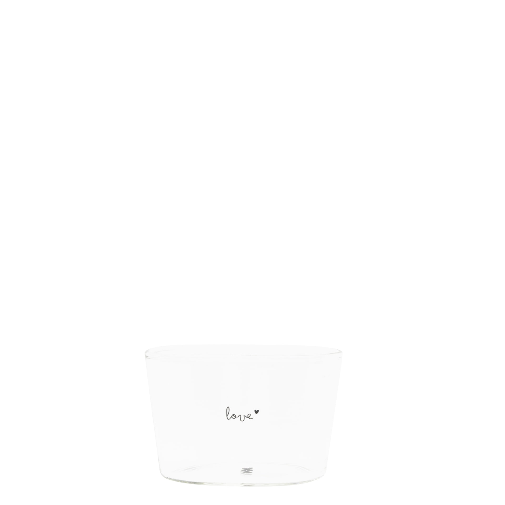 Bastion Collections Sklenička Small Love 200 ml, čirá barva, sklo. Každý doušek chutná lépe, když ho doprovází trocha lásky. Tuto skleničku od značky Bastion Collections zdobí jemný nápis „love“ v minimalistickém designu, který vnese do vašeho stolování kapku něhy a pohody. Je ideální na servírování pití, ale krásná bude i na servírování vrstvených dezertů, na posypku na koláč nebo domácí džem na vánočku.