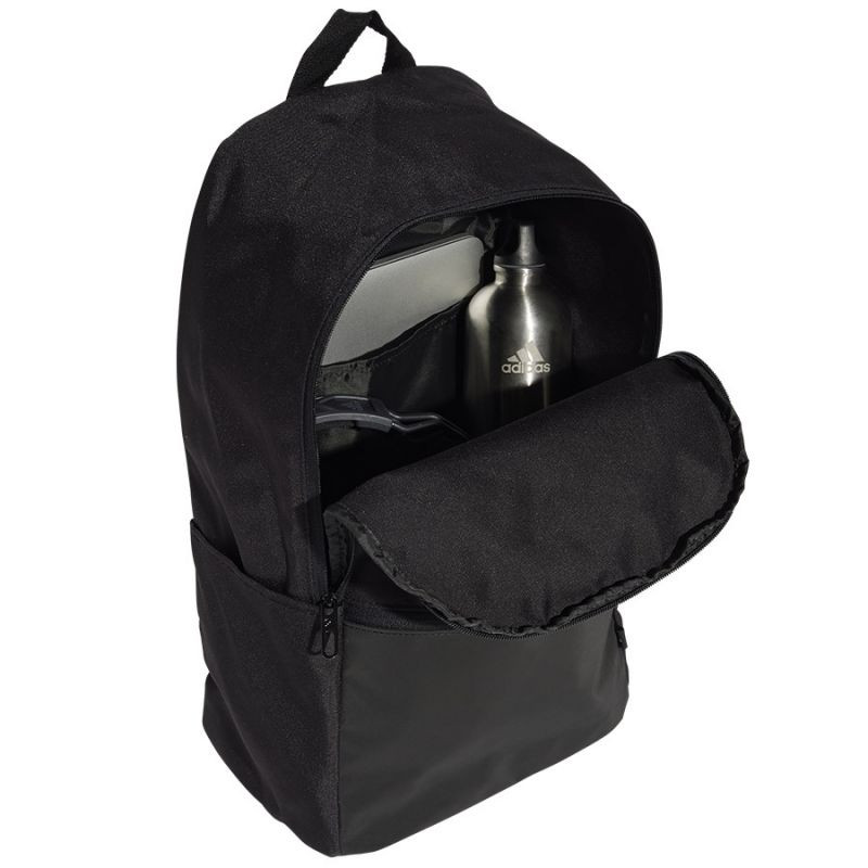 Vlastnosti: Batoh od adidas Vrchní vrstva a podšívka: tkanina s plátěnou vazbou, 100% recyklovaný polyester. Výplň: pěna, 100% polyethylen Hlavní přihrádka na zip Přední kapsa na zip a boční kapsy na drobnosti Vnitřní přihrádka na notebook Potažené dno materiál: materiál: 100% recyklovaný polyester Barva: recyklovaný polyester: černá