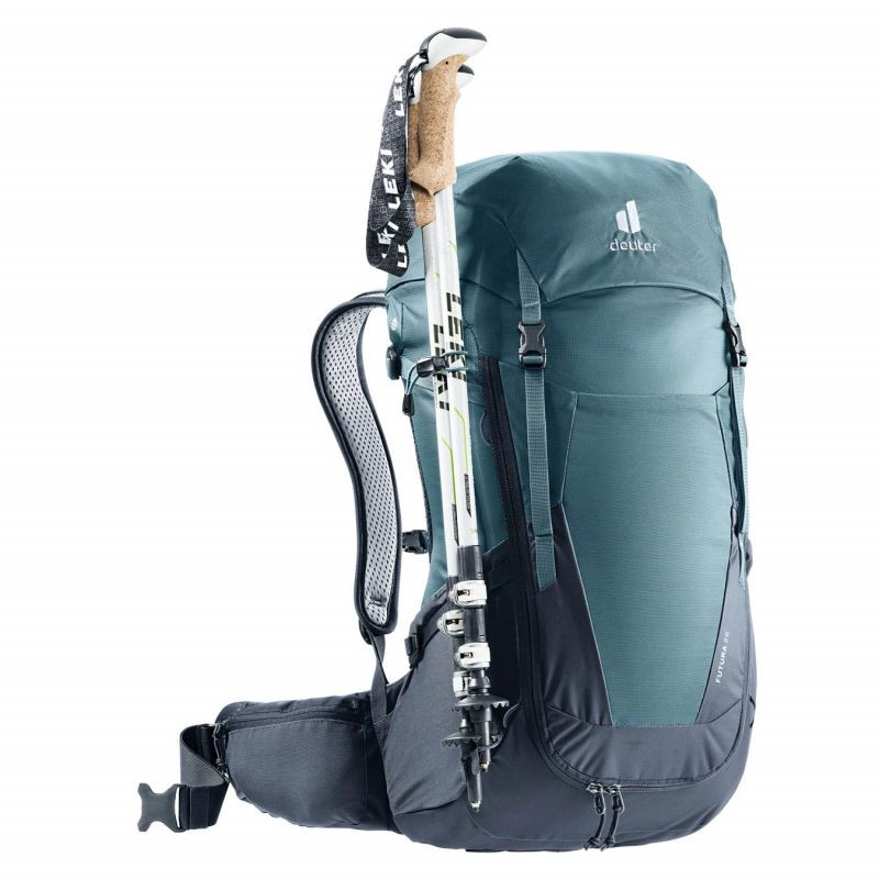 Batoh Deuter Futura 26L Vlastnosti: BatohDeuter Futura 26L je lehký, technický batoh, ideální pro náročnější jednodenní túry. Nosný systém Aircomfort poskytuje maximální pohodlí a nejmodernější síťovina umožňuje maximální proudění vzduchu skrz záda, čímž snižuje pocení o 25 % a zvyšuje výkonnost Pružná přední kapsa ze síťoviny je ideální pro odvětrání mokrého oblečení na cestách, například po rychlém vykoupání v horském potoce. Hlavní materiál řady Futura má certifikaci bluesign®, která zaručuje ekologickou a odpovědnou výrobu. Barva: zelená