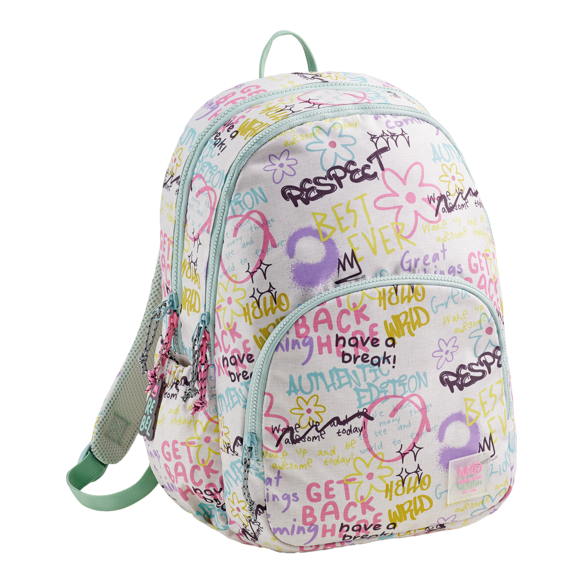 <p>Moderní, lehký batoh s jemnými barevnými motivy. Dělení na tři kapsy poskytuje dostatek prostoru pro školu a osobní drobnosti. Recyklovaný odolný materiál prodlužuje životnost, zesílené výztuhy zespodu chrání batoh před poškozením a znečištěním.</p><p>rozměry: 410 × 280 × 165 mm</p><p>materiál: recyklovaný polyester (rPET)</p><p>hmotnost: 600 g</p><p>3 kapsy na zip, síťovaná kapsa na drobnosti</p><p>2 otevřené boční kapsy na láhev</p><p>balení: 1 ks</p><p></p><p><br /></p>