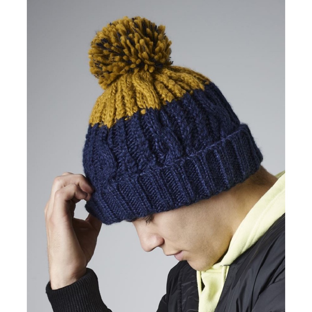 B 437 Čepice Apres Materiál:100% akryl Vlastnosti: flexibilní ohrnutý lem, uvnitř termopáska z umělé jehněčí kůže, 2-barevné, s bambulí, robustní úplet s copánkovým vzorem z více přízí, štítek TearAway, ruční praní, nelze žehlit Velikosti: onesize Různé barvy