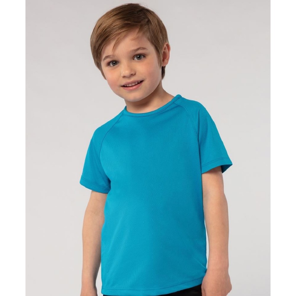 Sporty Kids - dětské raglánové sportovní tričko 140g/m2, 100% polyesterová síťovina Prodyšný materiál, úzká lemovka, raglánový rukáv, prodloužená záda, vhodné pro sublimační tisk, pratelné na 40°, nelze sušit v sušičce Velikosti: 6 Y – 8 Y – 10 Y – 12 Y