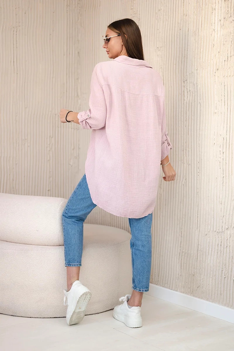 Bavlněná mušelínová košile oversize tmavě pudrově růžová UNI