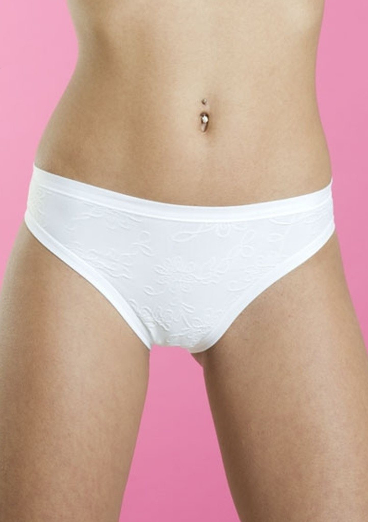 Dámské bavlněné kalhotky značky Lovelygirl. Klasické kalhotky nižšího střihu v bílé nebo černé barvě jsou vyrobeny z bavlny a ze 100% celulozového vlákna modal (přírodní vlákno v základu vyráběné z bukového dřeva), které dodává látce dokonalou pružnost, jemnost a hedvábný lesk. Tato látka má dokonalou nasákavost a schopnost rychle odvádět pot od povrchu těla, což oceníte při celodenním nošení. Přední část je vyrážena plastickým květinovým vzorem. Uvnitř kalhotek je vsazený bavlněný klínek. Tento model kalhotek je dokonale jemný a velmi příjemný na dotek.Materiálové složení: 45% bavlna, 45% modal, 10% elastan.