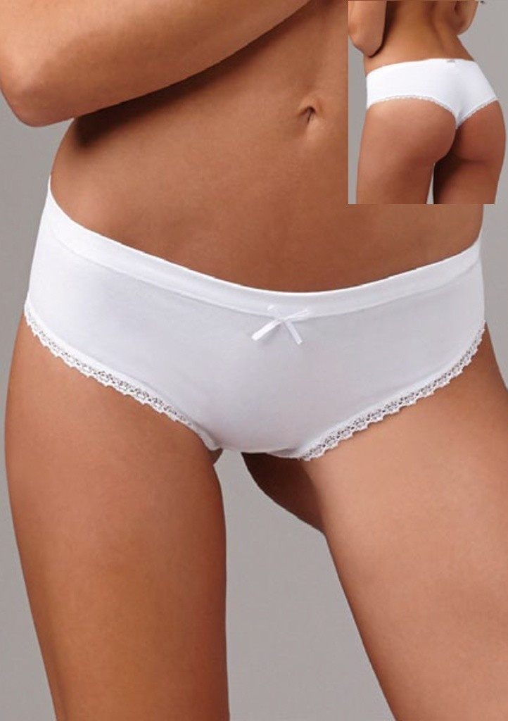 Dámské kalhotky oblíbeného střihu od značky Lovelygirl. Kalhotky jsou vyrobeny z jemné bavlny. Díky tomuto složení jsou kalhotky velice příjemné na nošení. Přední i zadní část je lemována jemnou krajkou. Materiálové složení: 90% bavlna, 10% elastan.