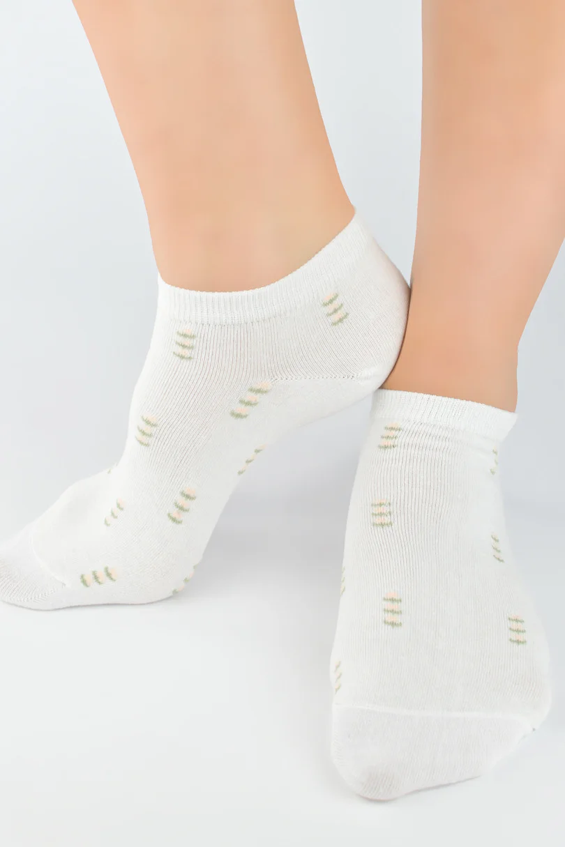 Stopki bawełniane ST061 marki Noviti to propozycja dla osób, które cenią komfort i modny wygląd każdego dnia. Wzorzyste, lekkie i wykonane z przewiewnej bawełny, doskonale sprawdzą się zarówno wiosną, latem, jak i w codziennym użytkowaniu w domu, pracy czy szkole. Zastosowanie elastanu i poliestru sprawia, że stopki są elastyczne, dobrze przylegają do stopy i nie zsuwają się podczas noszenia. Nowoczesny wzór dodaje charakteru i świetnie pasuje do sportowego oraz casualowego obuwia.