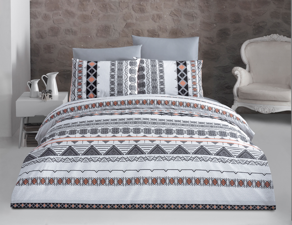 Bavlněné povlečení s egyptskými artefakty Ložní povlečení Milady, je vyrobeno ze 100% hladké bavlny renforceBavlněné povlečení Vás svým vzorem zavede až do dalekého EgyptaRůzné geometrické tvary, které se prolínají v barvách šedé, černé a oranžové vedou na povlaku přikrývky vodorovněBarevný podklad tvoří drobné, světle šedé geometrické útvaryPovlak polštáře je ušitý v závislosti na střižení materiálu a jeho vzor vede svisleSada povlečení obsahuje 1 povlak na polštář a 1 povlak na přikrývku, vzorem i barvou jsou shodnéPovlečení má certifikát Öko-Tex Standard 100Doporučená barva prostěradel je bílá, hnědá, šedá Snadná údržba, doporučujeme praní na 40-60°C, se zapnutým zipovým uzávěrem, z rubu a odstřeďování při nižších otáčkách, které zabrání polámání bavlněných vláken a tak k jejich trvalému poškozeníNepoužívejte prací prostředky s obsahem rozjasňujících a bělících substancí Odstíny barev obrázků se mohou barevně lišit, v závislosti na nastavení Vašeho monitoru