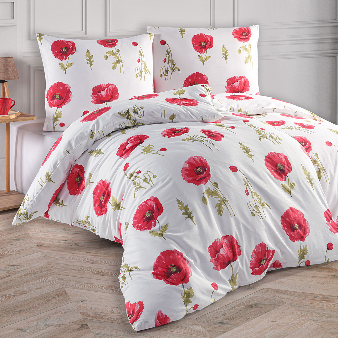 Bavlněné povlečení s červenými máky Povlečení Mona je vyrobeno ze 100% hladké bavlny renforcé a pochází z nové kolekce značky BedTex ExklusiveLožní sada je opatřena praktickým zipovým zapínáním Bavlněné povlečení s červenými květy máku, je úžasnou variantou pro Vaše ložniceVeselé a zároveň elegantní ložní sada Vás okouzlí natolik, že se Vám nebude chtít vstávat z posteleČervené máky jsou z obou stran povlaku přikrývky i polštářeVhodnou barvou prostěradel bude bílá a červená Bavlněné povlečení Mona nabízíme ve čtyřech rozměrech: Rozměry povlečení na jedno lůžko 140x200/ 70x90 cm                                                          135x200/ 80x80 cmRozměry IKEA                                   150x200/ 50x60 cmRozměry povlečení na dvojlůžko    160x200/ 2x 70x80 cm Povlečení je opatřeno certifikátem kvality Oeko-Tex Standard 100Odstíny barev obrázků se mohou barevně lišit, v závislosti na nastavení Vašeho monitoru Doporučujeme praní maximálně na 60°C, pro více probarvené povlečení však raději využijte 40°CPovlečení vždy perte z rubu, odděleně, a se zapnutým zipovým uzávěremNikdy nepoužívejte prací prostředky s obsahem bělících a rozjasňujících substancíVždy odstřeďujte při nižších otáčkách, aby nedošlo během odstřeďován k polámání bavlněných vláken, a tak k jejich trvalému poškozeníNedoporučujeme používání avivážních prostředků, mohou slepit bavlněná vlákna a snížit tak jejich savost