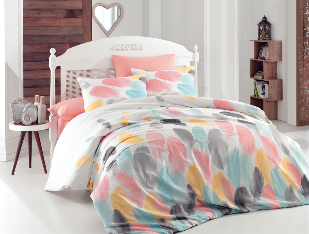 Ložní povlečení s barevnými pírky Ložní povlečení Tuy Tyrkysové, je vyrobeno ze 100% hladké bavlny renforceHlavním vzorem bavlněného povlečení jsou pírka, peříčka a péra, která jsou v pastelových barváchPřevládající barvou je tyrkysováVšehna pírka na povlaku přikrývky vedou svisle, směrem dolůPovlak polštáře je střižen ze svislého pruhu látky přikrývky, je tedy ušitý v závislosti na střižení a jeho vzor vede vodorovněPovlak na přikrývku a polštář je opatřen zipemPovlak polštáře a přikrývky je barevně i vzorem shodnýSada povlečení klasické obsahuje 1 povlak na polštář a 1 povlak na přikrývku, francouzské povlečení pak 2 povlaky na polštáře a 1 povlak na přikrývkuPovlečení má certifikát Öko-Tex Standard 100K povlečení budou ladit prostěradla barvy broskvové, tyrkysové, šedé a žlutéBavlněné povlečení Tuy Tyrkysové, najdete v naší nabídce ještě v barvě růžové a šedé Snadná údržba, doporučujeme praní na 60°C, se zapnutým zipovým uzávěrem, z rubu, dle symbolů uvedených na obaleNepoužívejte prací prostředky s obsahem bělících a rozjasňujících substancíOdstřeďujte při nižších otáčkách, aby nedošlo k polámání, a tak k trvalému poškození bavlněných vláken Odstíny barev obrázků se mohou barevně lišit, v závislosti na nastavení Vašeho monitoru