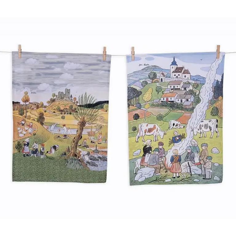 Kolekce bavlněných kuchyňských utěrek s kresbami Josefa Lady vnese do vaší kuchyně jedinečnou atmosféru. Díky nejmodernější digitální tiskové technologii se pyšní nádhernými barvami a precizními detaily, které vykreslují autentickou ladovskou poetiku. Kvalitní bavlněný materiál se vyznačuje svou hebkostí, vynikající savostí a poddajností. Gramáž 180 g/m2 zajistí dlouhou životnost a hustou a pevnou strukturu látky. Utěrkám nechybí praktické poutko pro snadné zavěšení.