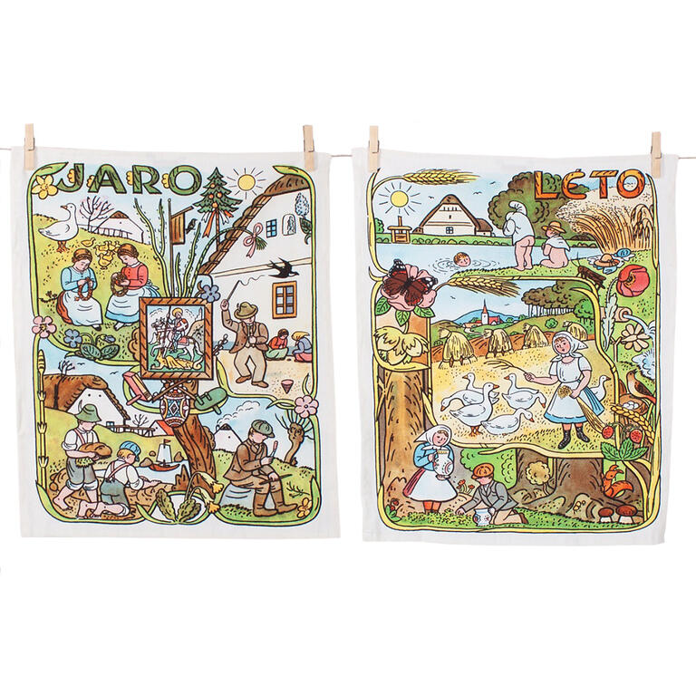 Kolekce bavlněných kuchyňských utěrek s kresbami Josefa Lady vnese do vaší kuchyně jediněčnou atmosféru. Díky nejmodernější digitální tiskové technologii pyšní nádhernými barvami a precizními detaily, které vykreslují autentickou ladovskou poetiku. Kvalitní bavlněný materiál se vyznačuje svou hebkostí, vynikající savostí a poddajností. Gramáž 180 gr/m2 zajistí dlouhou životnost a hustou a pevnou strukturu látky. Utěrkám nechybí praktické poutko pro snadné zavěšení.