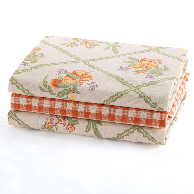 Sada 3 utěrek pomůže při vaření, ozdobí kuchyň a krásně se doplní s ostatními díly naší meruňkové kolekce.